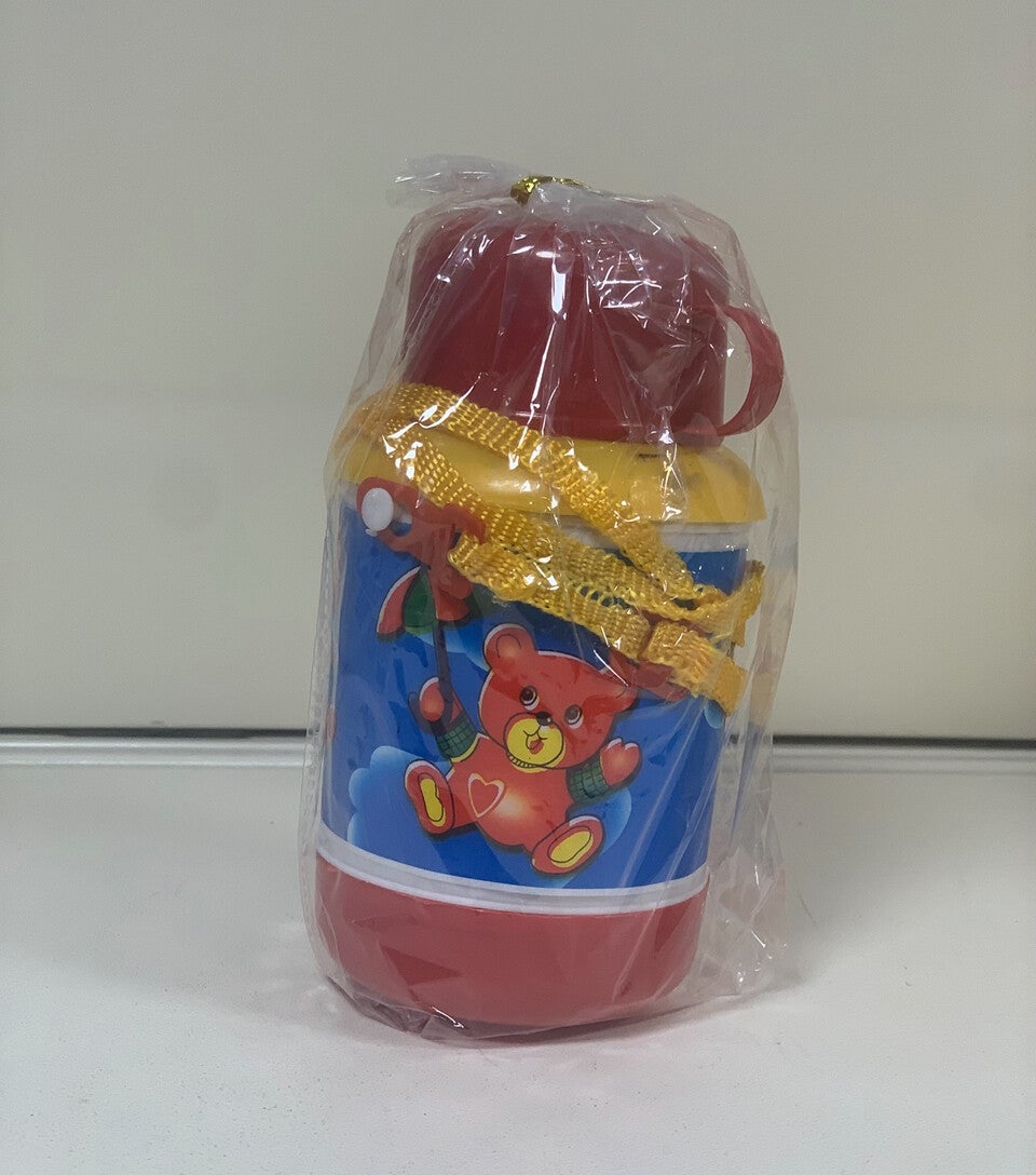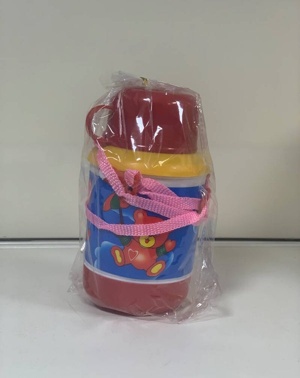 Avec bandoulière et gobelet intégré. Ludique et pratique pour l’école ou les sorties.