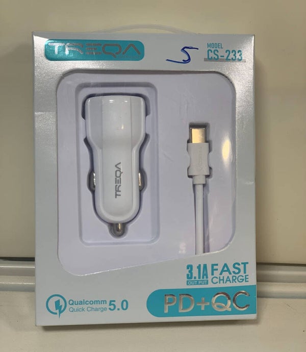 Chargeur voiture ultra rapide avec technologie Qualcomm 5.0. Inclut un câble USB-C. Compatible avec la plupart des appareils.