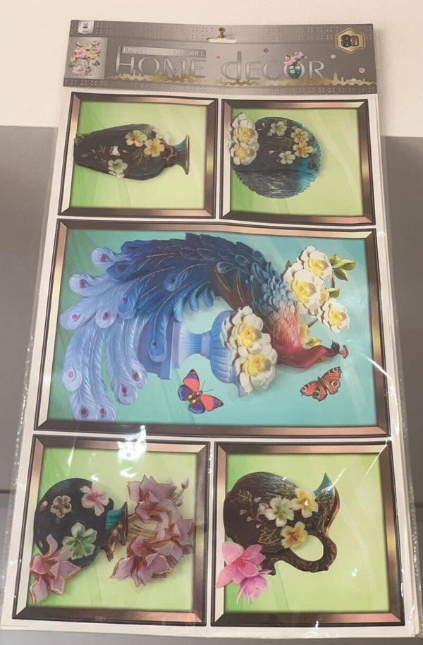 Planche d’autocollants relief (fleurs, papillons, animaux), idéal pour embellir les murs à petit prix.